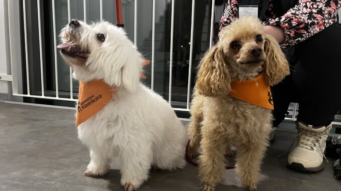 Sanna Kyllönen ja Raija Lassila ovat olleet Kennelliiton kaverikoiratoiminnassa koiraohjaajina jo monta vuotta.