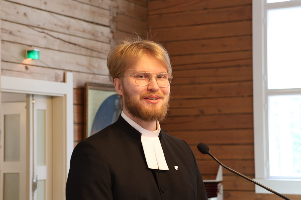Messun toimittanut seurakuntapastori Väänänen kertoo jutelleensa messukävijöiden kanssa ja havainneensa kiinnostuksen messua kohtaan.