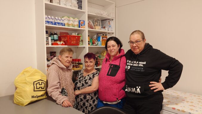 Taloudelliset haasteet ja tekevien käsiparien vähyys aiheuttavat huolta Raahen Vapaaehtoisissa. Kuvassa Merja Laihola, Sirpa Joensuu, Ekaterina Molchanova ja Sari Niemelä. Kuva: Eetu Saarenpää