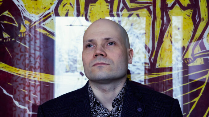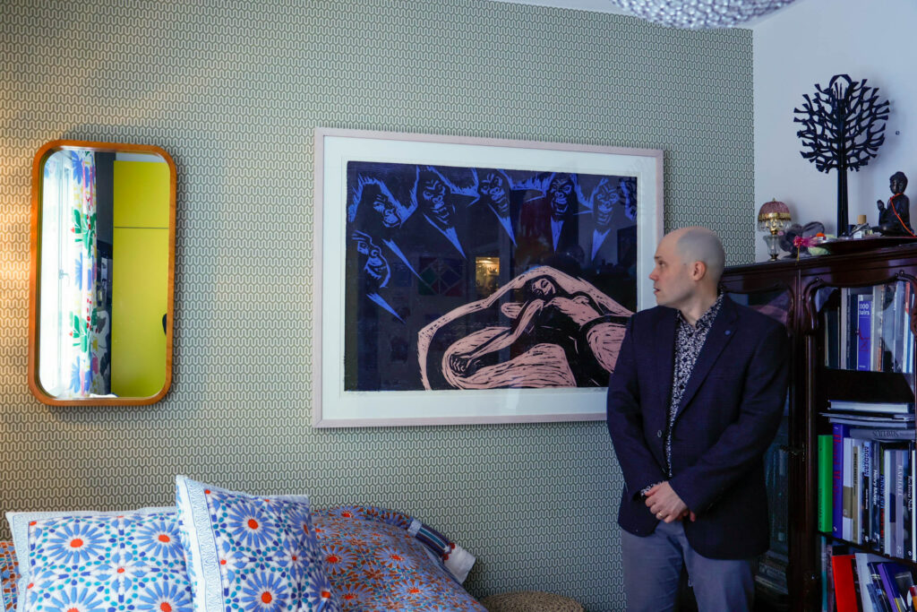 Ovikellon sointi kaikuu muuten niin autiossa rappukäytävässä, ja aamupäivän aurinko maalailee säteillään kerrostalon seiniä. Oven avattuaan Jarkko Lauri ojentaa kätensä lämpimään tervehdykseen. Myös labradorinnoutajat Dexi ja Selda tulevat tekemään tuttavuutta hännät iloisesti heiluen. Asunto on täynnä katseen vangitsevia taideteoksia ja persoonallisen sävykkäitä värejä.